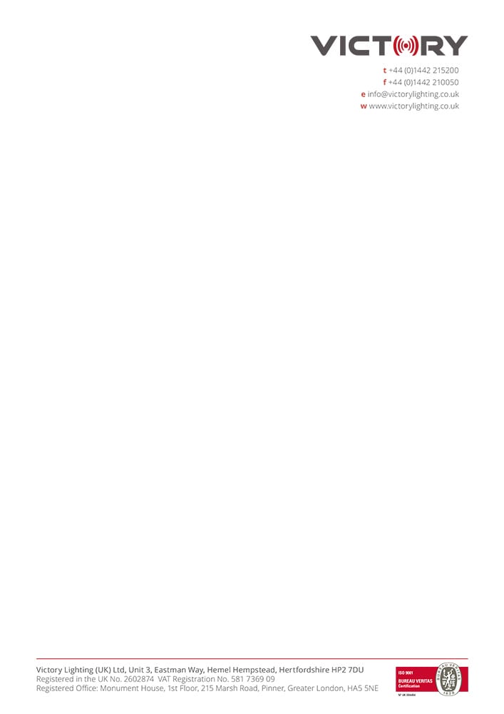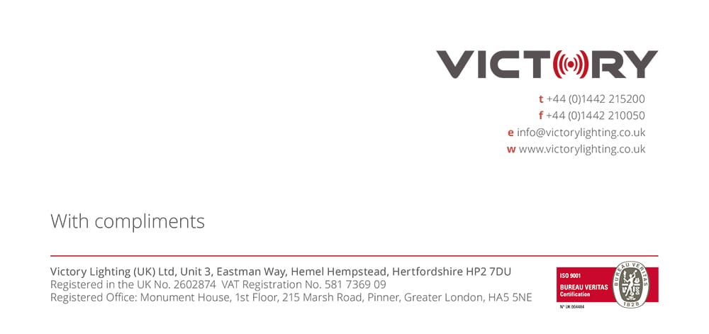 Victory lighting is a manufacturer and supplier of specialised heating and lighting products. The company had been trading successfully for many years, with many technically innovative product launches to their name, but felt that their branding and marketing was not doing justice to this. They therefore retained Longbow to provide a complete marketing support service, starting with a rebranding of the business.
